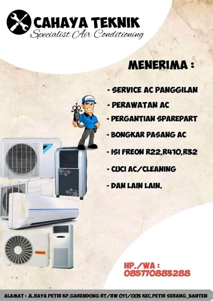 Jasa Service AC Di Serang Melayani Berbagai Jenis Pekerjaan Bidang Jasa Pendingin AC Seperti Cuci AC Pasang AC Bongkar Pasang AC Perbaikan AC Isi Freon AC Tambah Freon AC.Berbagai Jenis & Merk AC Seperti LG Gree Sharp Panasonic & Merk AC Lainnya