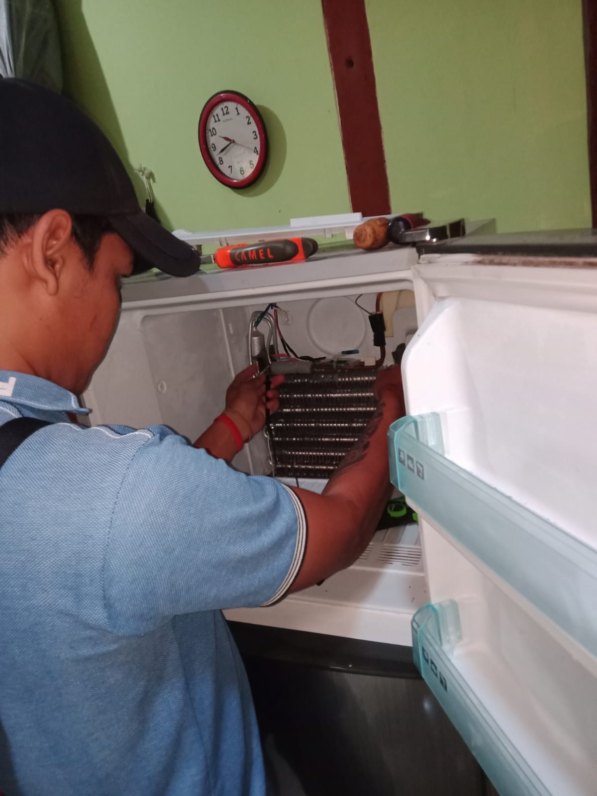 Kami akan datang dan memperbaiki / melakukan service kulkas di tempat Anda, mulai dari ganti sparepart, isi freon, ganti filter, pencucian dan permasalahan teknis lainnya baik itu lemari es yang tidak dingin, kompresor kulkas tidak bekerja, evaporator freezer bocor, kabel power kulkas putus dll.