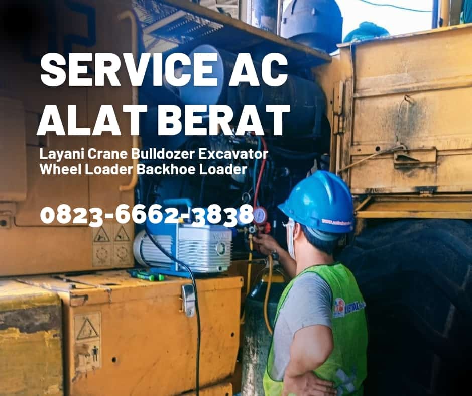 Service AC Alat Berat siap ditangani oleh teknisi handal dan berpengalaman.Selain Service Kami juga Melayani pasang baru AC untuk kabin operator excavator, Wheel Loader, Crane, Backhoe Loader, Bulldozer dan sebagainya dengan harga pasang yang terjangkau. Untuk informasi dan pemesanan silahkan hubungi Contact Person kami 082366623838.