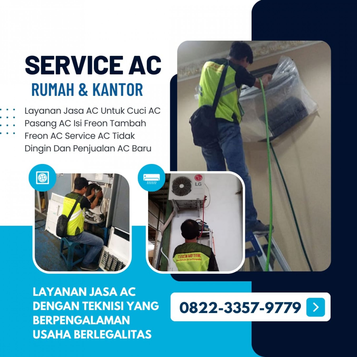 Layanan Berkualitas & Bergaransi Layanan Jasa Service,Cuci,Bongkar & Pasang AC kami di dipercaya karena Berkualitas & Bergaransi. Gratis Konsultasi Kesulitan menemukan jasa Service AC yang selalu siap? segera hubungi kami sekarang juga