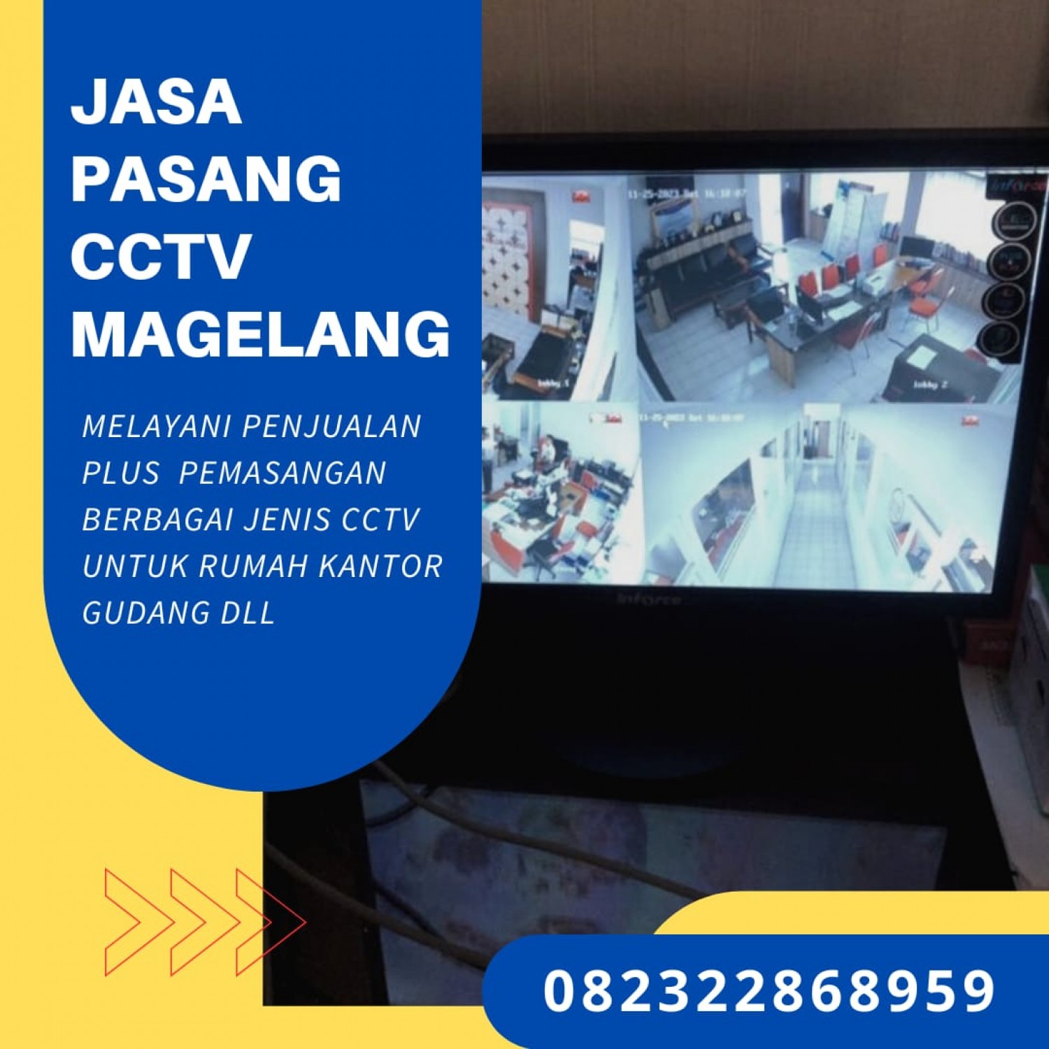 Jasa Pasang CCTV Kajoran Magelang 082322868959 CV Griya Teknik Magelang menawarkan jasa pemasangan CCTV bagi anda yang berdomisili di Magelang. Pelayanan dalam bidang Pemasangan CCTV merupakan salah satu jasa yang kami unggulkan dengan banyaknya pengalaman/pesanan dari konsumen yang menggunakan jasa kami untuk pasang CCTV khususnya Di Kajoran Magelang.