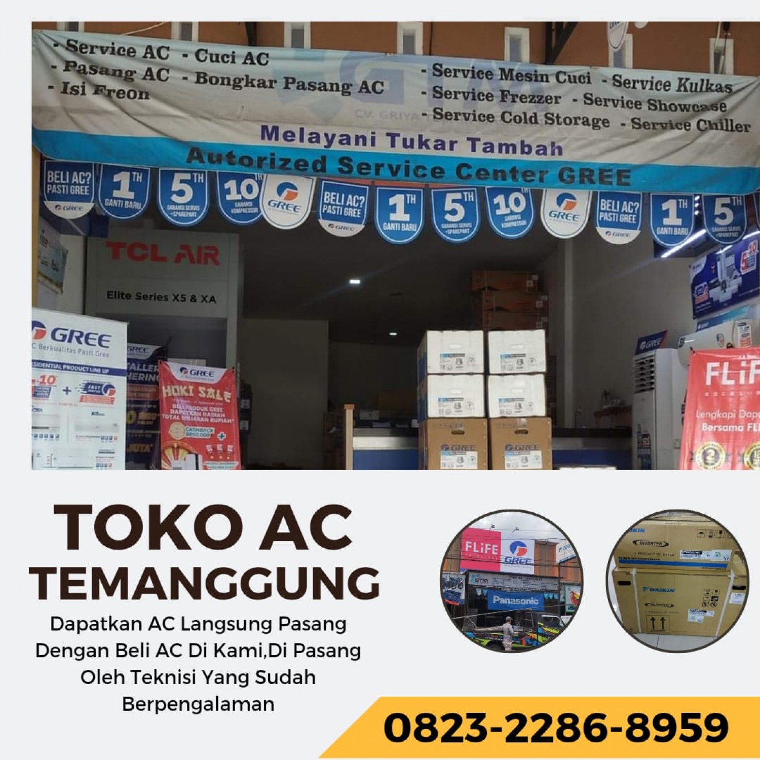 Toko AC Temanggung 082322868959 CV Griya Teknik toko Jual AC 2,5PK menyediakan kebutuhan AC untuk Rumah Kantor Pabrik anda. Karena kami merupakan spesialis dan fokus di bidang AC, maka kami dapat menghadirkan produk yang lengkap.Anda dapat memesan berdasarkan pk, merk dan fitur AC dengan mudah dengan menghubungi kontak kami. Kami juga menyediakan pembelian secara grosir maupun untuk perusahaan dengan faktur pajak.