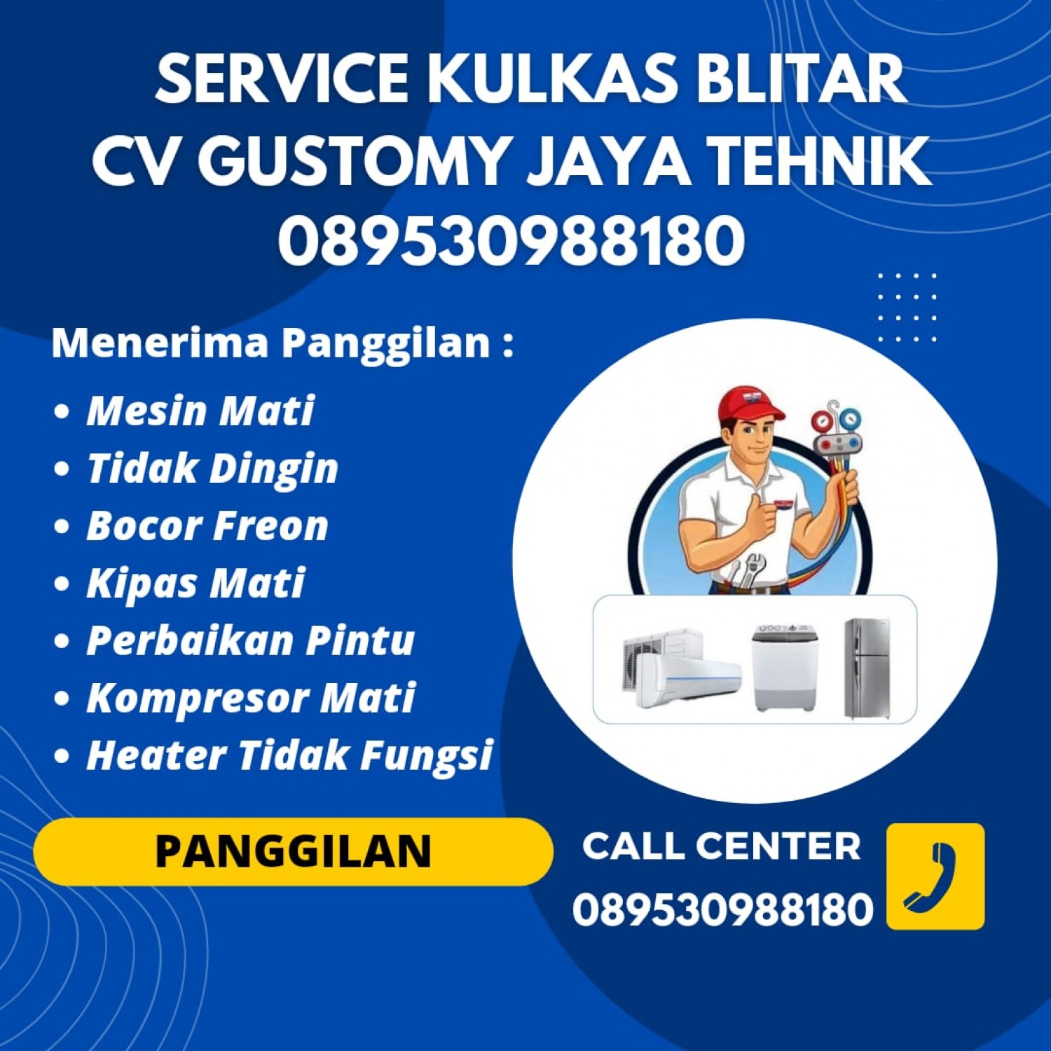 Service Kulkas Wlingi Blitar 089530988180 Melayani Service Kulkas Freezer Showcase Freezer Box & Alat Pendingin Lainnya.CV Gustomy Jaya Tehnik Siap dipanggil untuk menangani problem kulkas Anda.